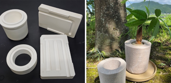セルベン(陶磁器片)や廃石膏などのリサイクル資源を活用した研究成果などの展示・紹介